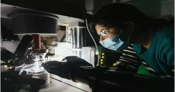 Komal Chawla, a postdoctoral exploration partner at the University of Wisconsin-Madison, studies the architected in an upward direction adjusted carbon nanotube froth in the lab.