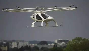 Initially just a dot on the horizon, the insect-like, electrically powered craft buzzes over Paris as the city's traffic snarls. It gives its likely awestruck