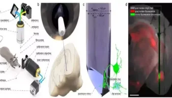 Minimally invasive techniques that allow for images of delicate deep-brain tissues are required to investigate the activity of neuronal structures and the interaction of nerve
