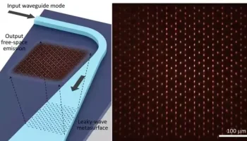 "Leaky-wave metasurfaces," a new class of integrated photonic devices created by Columbia Engineering, are capable of converting light initially contained in an optical waveguide into