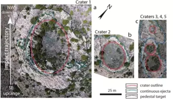 Impact cratering is the excavation of a planet's surface caused by a meteoroid strike. Impacts are instantaneous occurrences. They leave very distinct features. Craters are